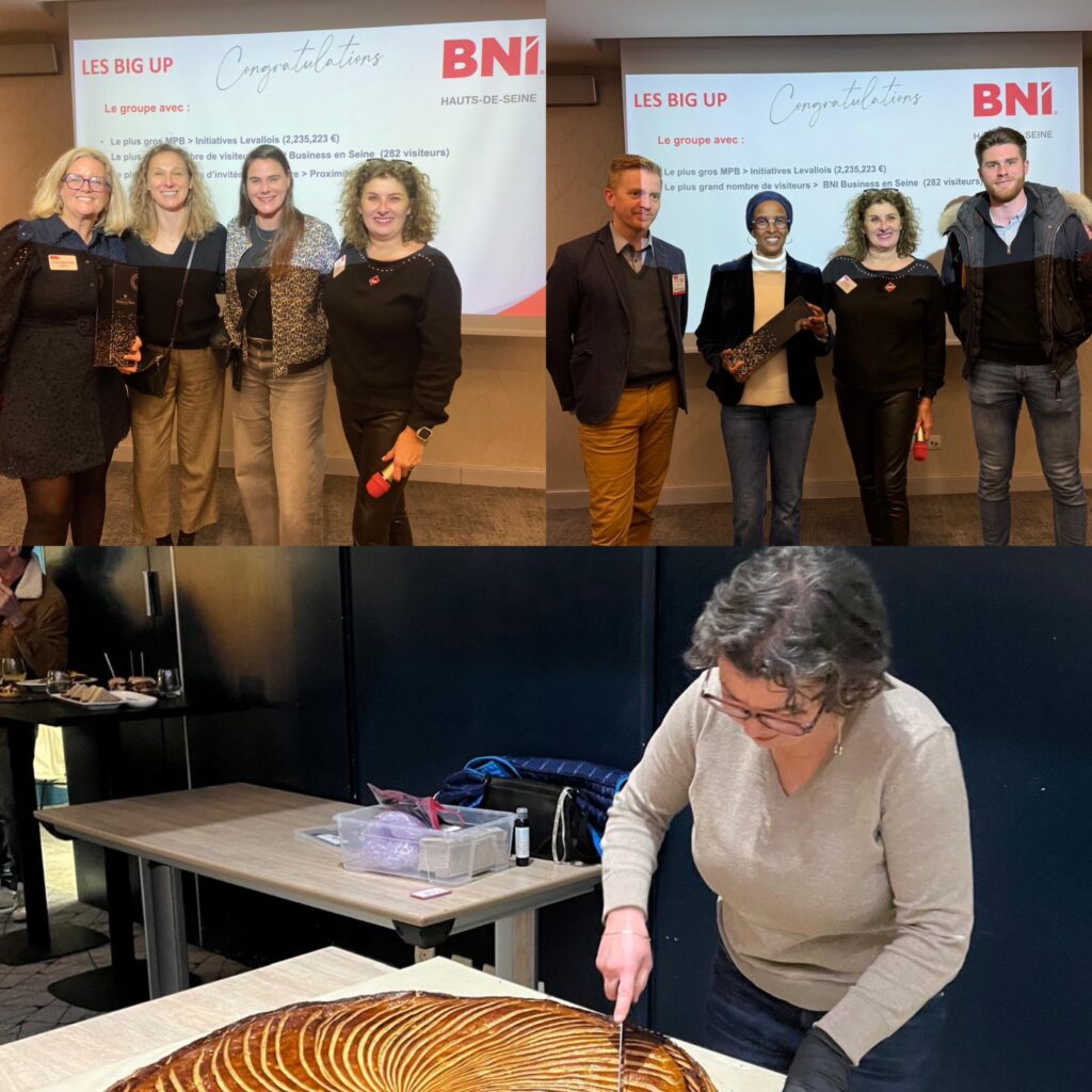 Malgré les conditions climatiques hivernales, plus de 80 Membres étaient présents pour partager une énorme galette concoctée par un Membre des Hauts-de-Seine, Nelly Traiteur, de BNI Initiatives à Levallois.